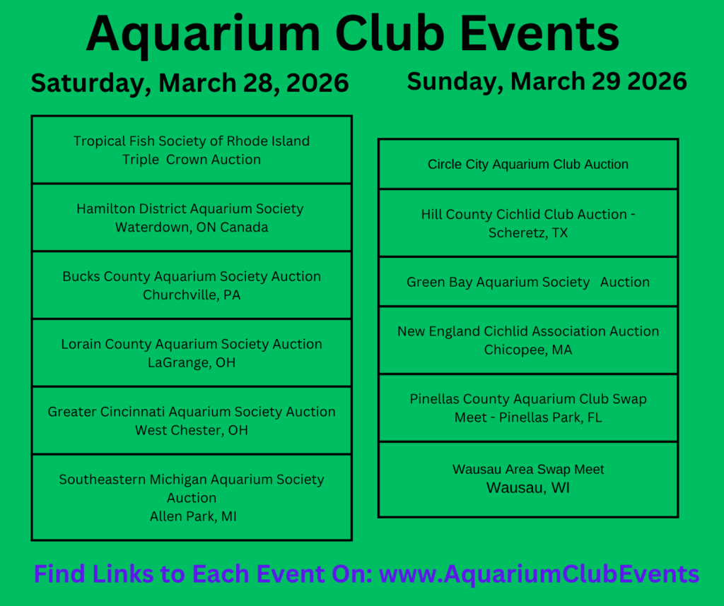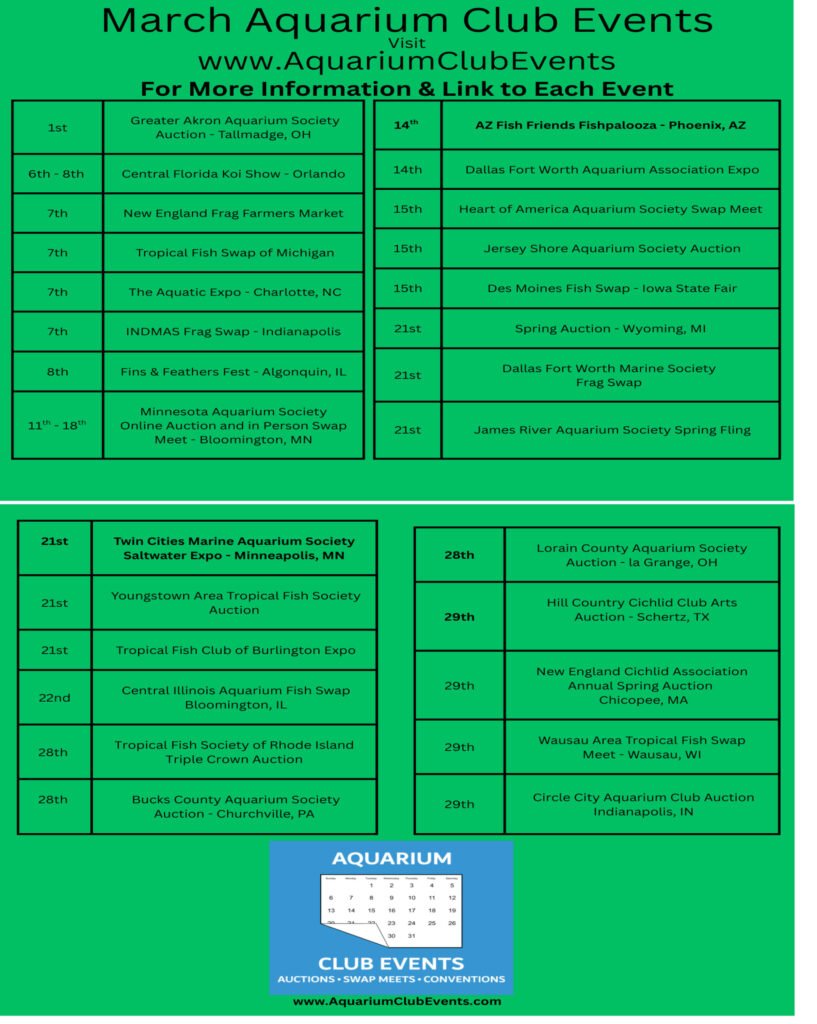 March 2026 Aquarium Club and Society Events